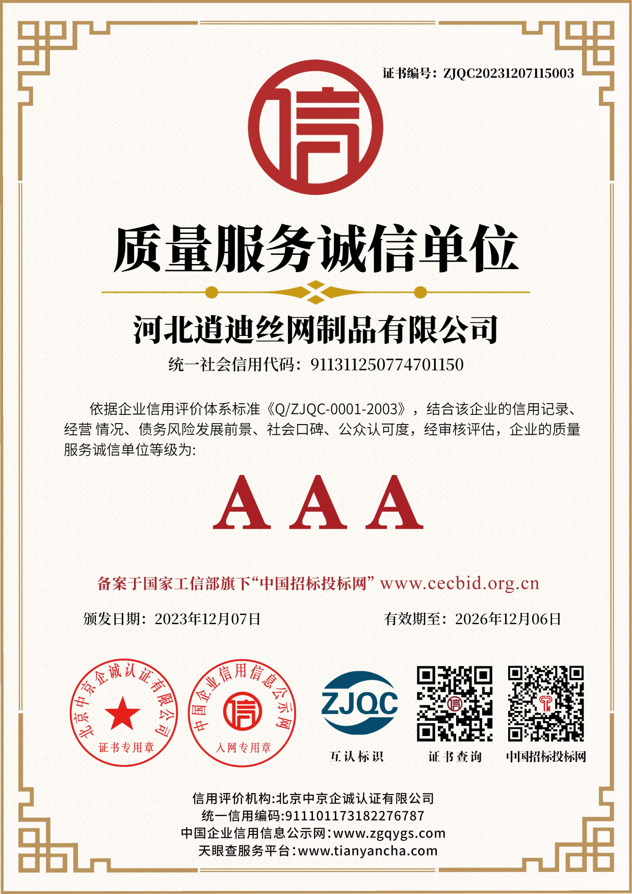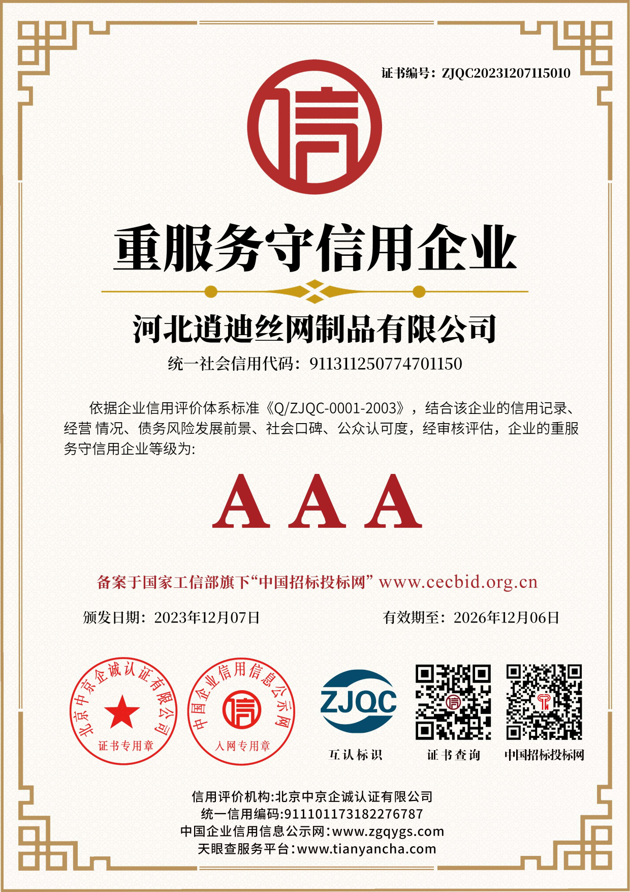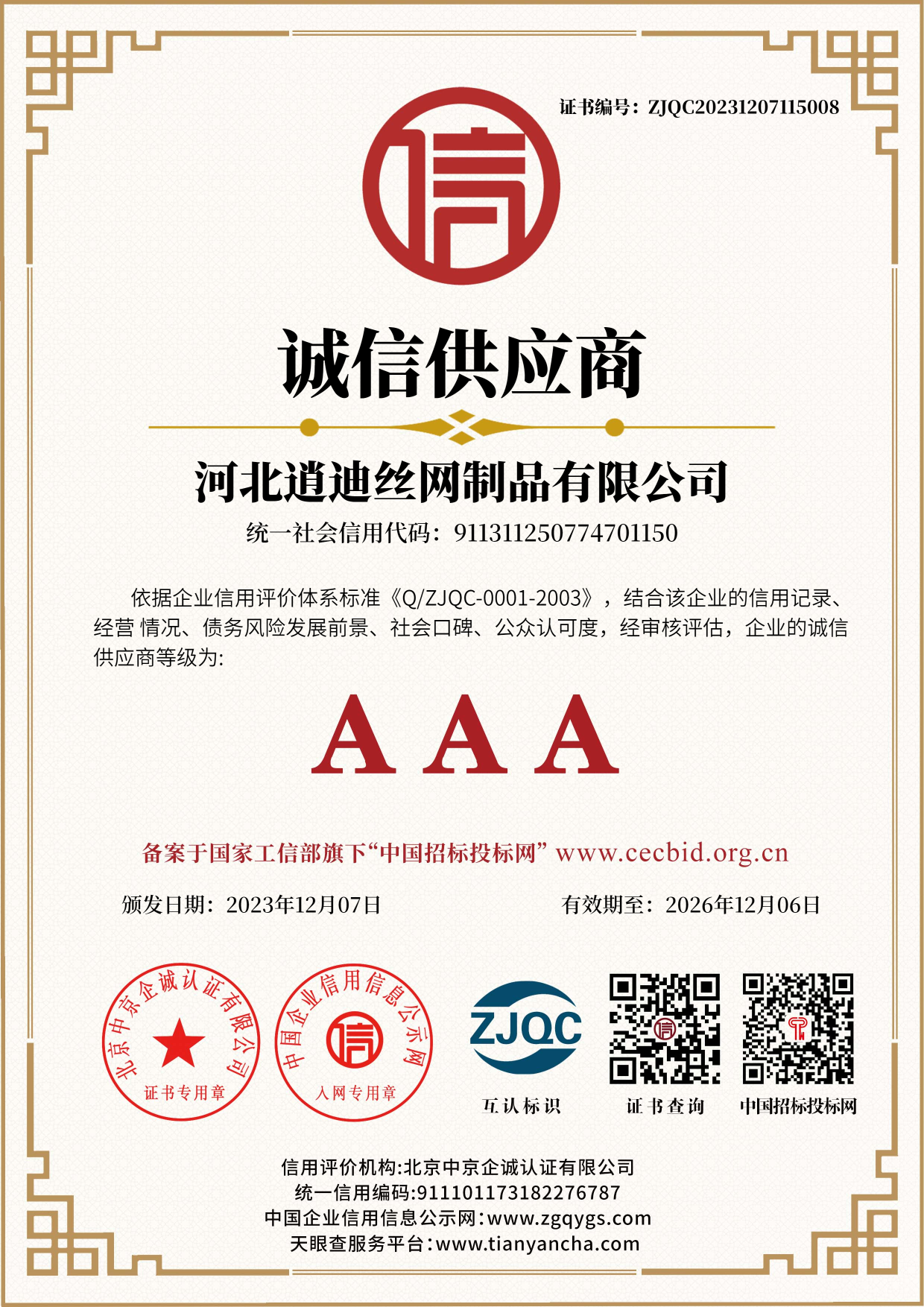 河北逍迪絲網制品有限公司誠信天下,誠信是我們公司一個原則問題不可撼動的,以心中有誠信的思想結交五湖四海的朋友,能達到雙贏是最好的,我們堅信朋友多了路好走,我們公司都是老朋友多,我們一直是這樣做的。河北逍迪絲網制品有限公司成立于2013年注冊資本壹仟伍佰萬整,主要生產沖孔網,鋼格板,金屬防蟲網,如實的實體廠家,是一家-研發(fā)-銷售-生產-安裝-售后一條龍公司,2019年通過了ISO 9001認證管理體系符合GB/T 19001-2016/ISO 9001:2015標準,同時通過了SGS認證,擁有商標版權2品牌,擁有一個著作版權,河北逍迪絲網制品有限公司位于中國有名的(絲網之鄉(xiāng))安平縣,于天津,北京,雄安,石家莊相鄰,交通非常發(fā)達,出口可以選擇天津港口非常近每天都有接貨送貨往返車輛,空運可以選擇石家莊正定機場,附近也有鐵路運輸,當地還有兩個生態(tài)物流園區(qū)發(fā)往全國各地,我們沖孔網工廠生產設備有:普通沖壓機,高速沖壓機,自主研發(fā)小微孔沖壓機,龍門沖,磚塔沖孔,重型沖孔機,萬瓦級別激光切割機,3000W激光切割機,焊接設備,折彎機,校平機,剪板機,精密校平機,(對板面平整度要求苛刻的客戶群體0.5-0.2誤差)我們公司銷售市場沒有局限性國內國外都供應,擁有出口權...